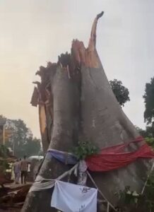 He further alleged that some individuals had recently tied red and white cloths around the tree, reportedly for spiritual purposes, and suggested that such actions might have affected its stability. However, there is no official confirmation linking those activities to the collapse.