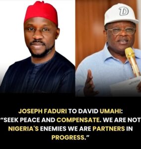 Labour Party’s ex-presidential aspirant H.E. Joseph Faduri boldly challenges Minister of Work and Housing, David Umahi, to stop spreading falsehoods and clear the air once and for all. Faduri emphasizes that hardworking diaspora investors are not the enemy; rather, they are vital partners in Nigeria’s progress. He demands that Minister Umahi produce the court judgment he claims the federal government won, urging transparency and truth.