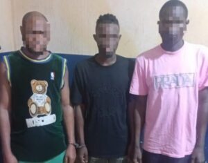 The suspects arrested were identified as Peter Okoye, 36, a computer engineer, alongside Jolly Ezekiel, 30, and Jolly Shadrack, 33.